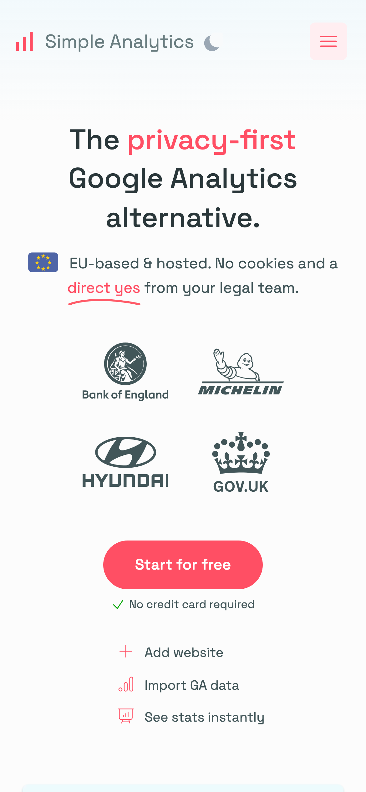 Verify ownership of simpleanalytics.com to unlock widgets, collect verified reviews, and manage your listing.