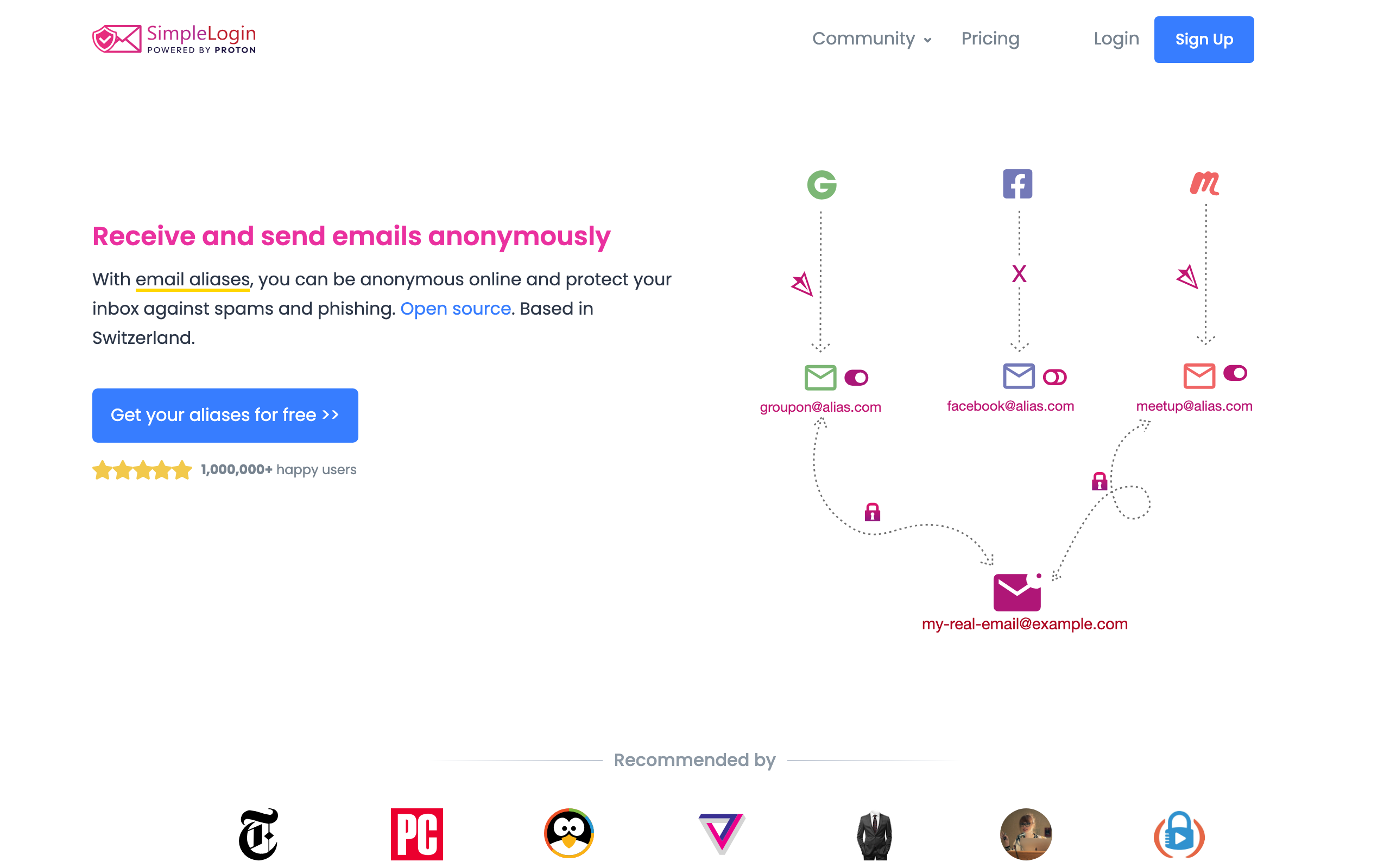 SimpleLogin is an open-source email alias solution designed to protect users' primary email addresses and online privacy. The tool allows users to create unique email aliases for different websites and services, masking their real email address and reducing exposure to spam, phishing, and data breaches. The platform is available across multiple devices through browser extensions for Chrome and Firefox, as well as dedicated mobile applications. When emails arrive at an alias, SimpleLogin forwards them to the user's real inbox, allowing seamless communication while maintaining anonymity. Users can disable or delete aliases at any time, providing control over their digital footprint. SimpleLogin is built as open-source software, meaning the code is publicly available for review and community contributions. This transparency appeals to privacy-conscious users who want to understand how their data is handled. The solution is suitable for anyone concerned about email privacy, including those managing multiple online accounts, dealing with unsolicited marketing emails, or seeking protection against phishing attempts. Key features include alias creation and management, email forwarding, the ability to reply through aliases, and cross-platform accessibility. The open-source nature distinguishes SimpleLogin from proprietary alternatives, as users can self-host the application or audit the codebase for security assurance.