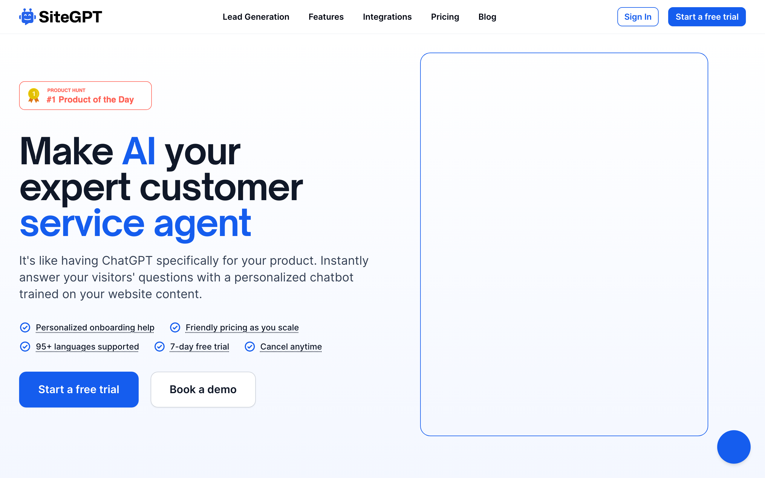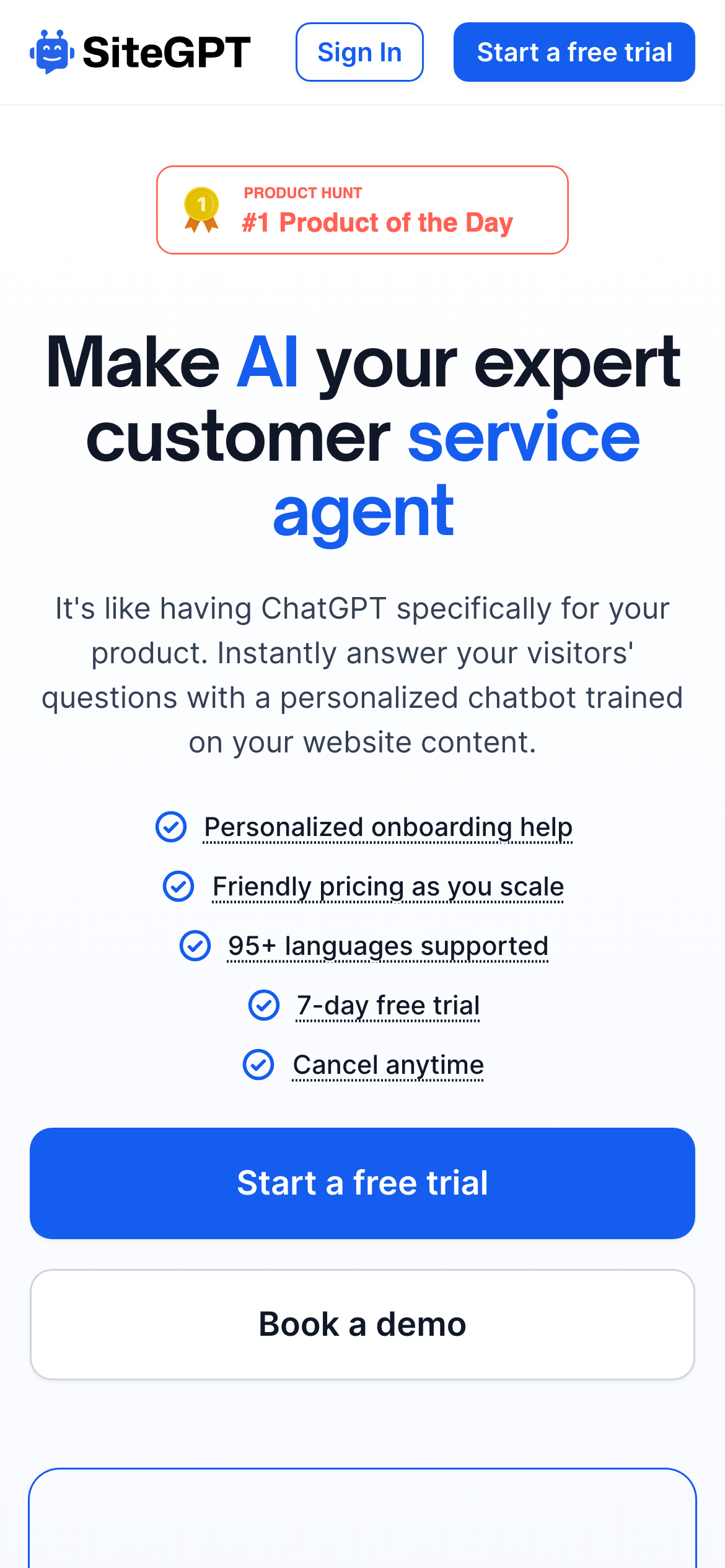 It's like having ChatGPT specifically for your product. Instantly answer your visitors' questions with a personalized chatbot trained on your website conten