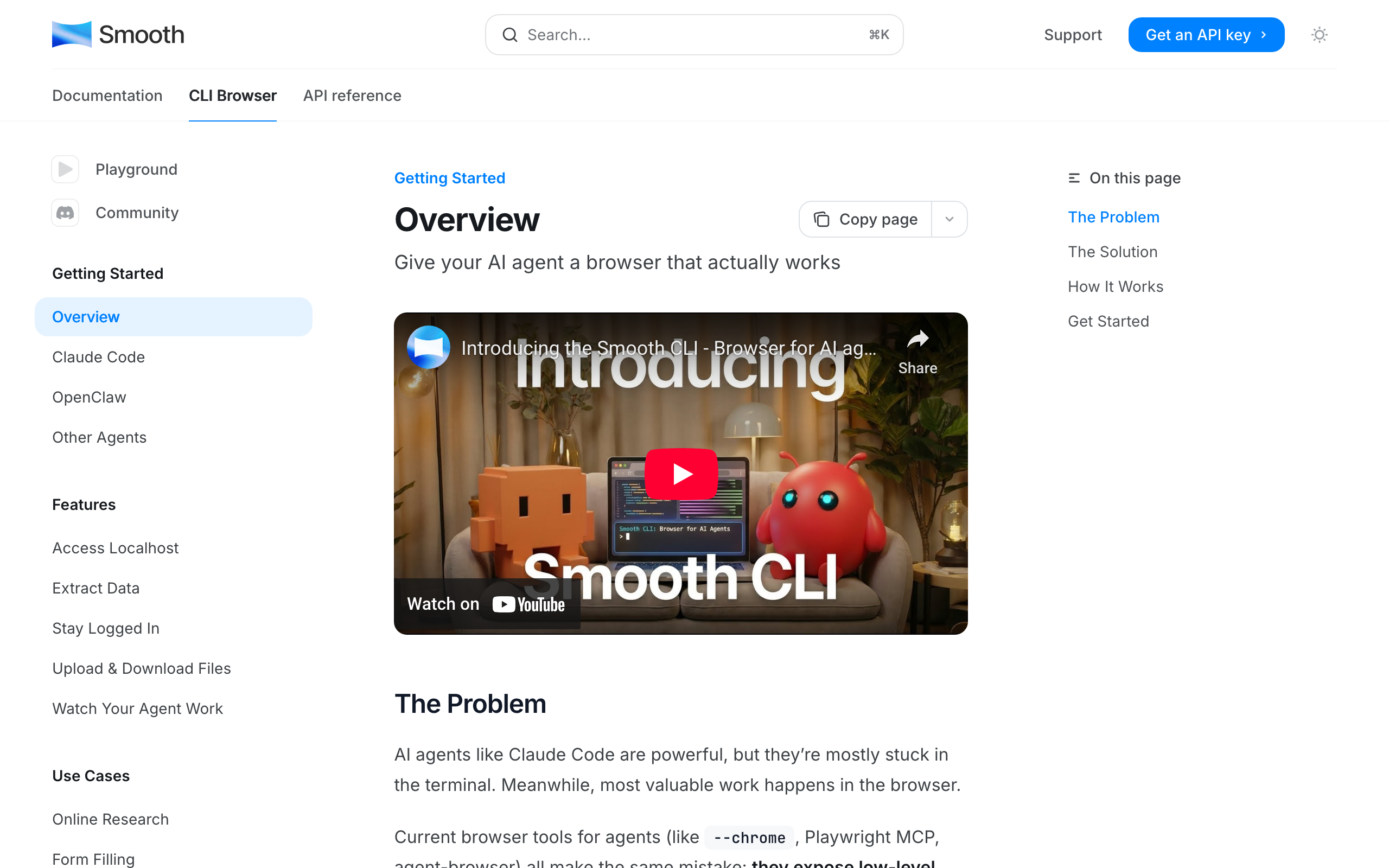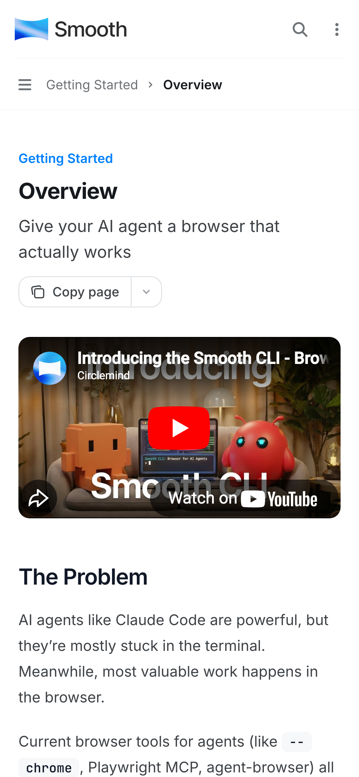 Hi HN! Smooth CLI ( https://www.smooth.sh ) is a browser that agents like Claude Code can use to navigate the web reliably, quickly, and affordably. It lets agents specify tasks using natural language, hiding UI complexity, and allowing them to focus on higher-level intents to carry out co