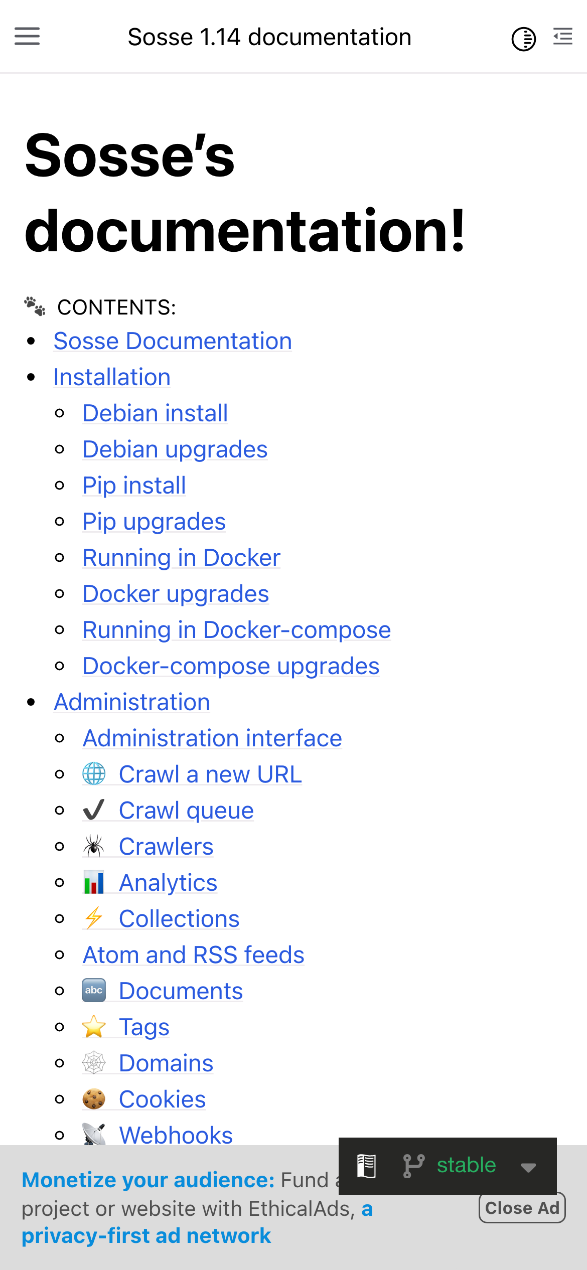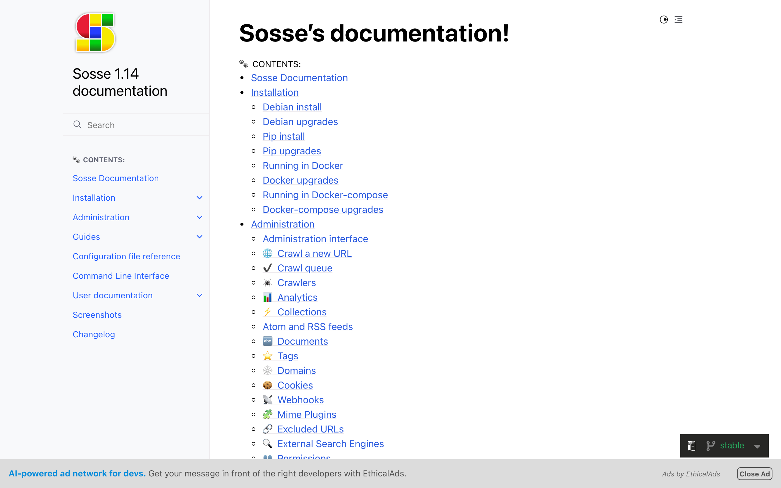 Verify ownership of sosse.readthedocs.io to unlock widgets, collect verified reviews, and manage your listing.