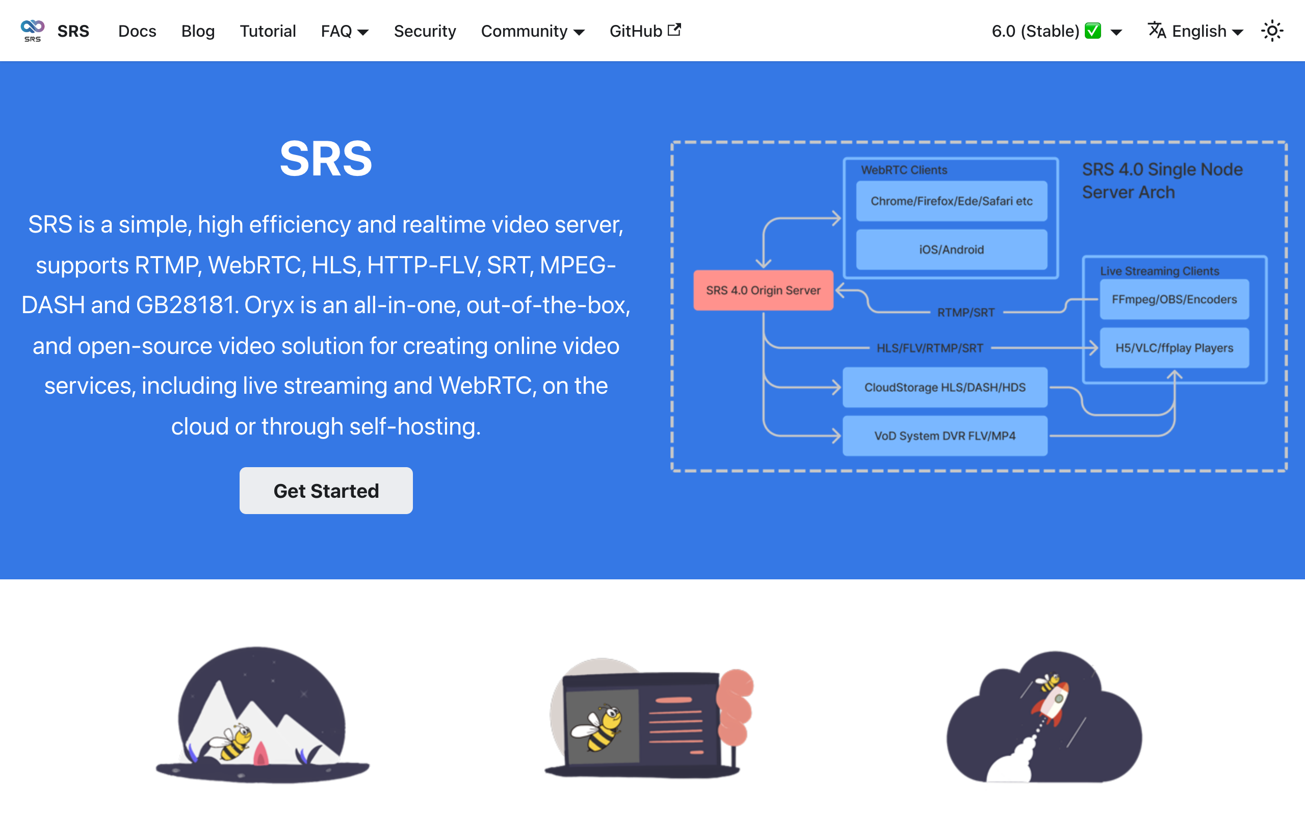 SRS (Simple Realtime Server) is an open-source video server designed for real-time streaming and video delivery. The platform supports multiple streaming protocols including RTMP, WebRTC, HLS, HTTP-FLV, SRT, MPEG-DASH, and GB28181, making it compatible with a wide range of streaming applications and use cases. Built for efficiency, SRS enables organizations to deploy live streaming solutions and WebRTC services either on cloud infrastructure or through self-hosted deployments. The project includes Oryx, a companion all-in-one solution that provides out-of-the-box functionality for creating online video services without requiring extensive configuration. SRS is primarily used by developers and organizations that need to build or operate video streaming infrastructure. Its open-source nature means the codebase is publicly available and community-driven, with active development maintained on GitHub. The platform serves use cases ranging from basic live streaming setups to more complex real-time video applications. As a free, open-source project, SRS has no licensing costs and allows users to modify and deploy the software according to their requirements. The project maintains multiple streaming protocol support, allowing flexibility in choosing delivery methods based on specific application needs and audience device compatibility.