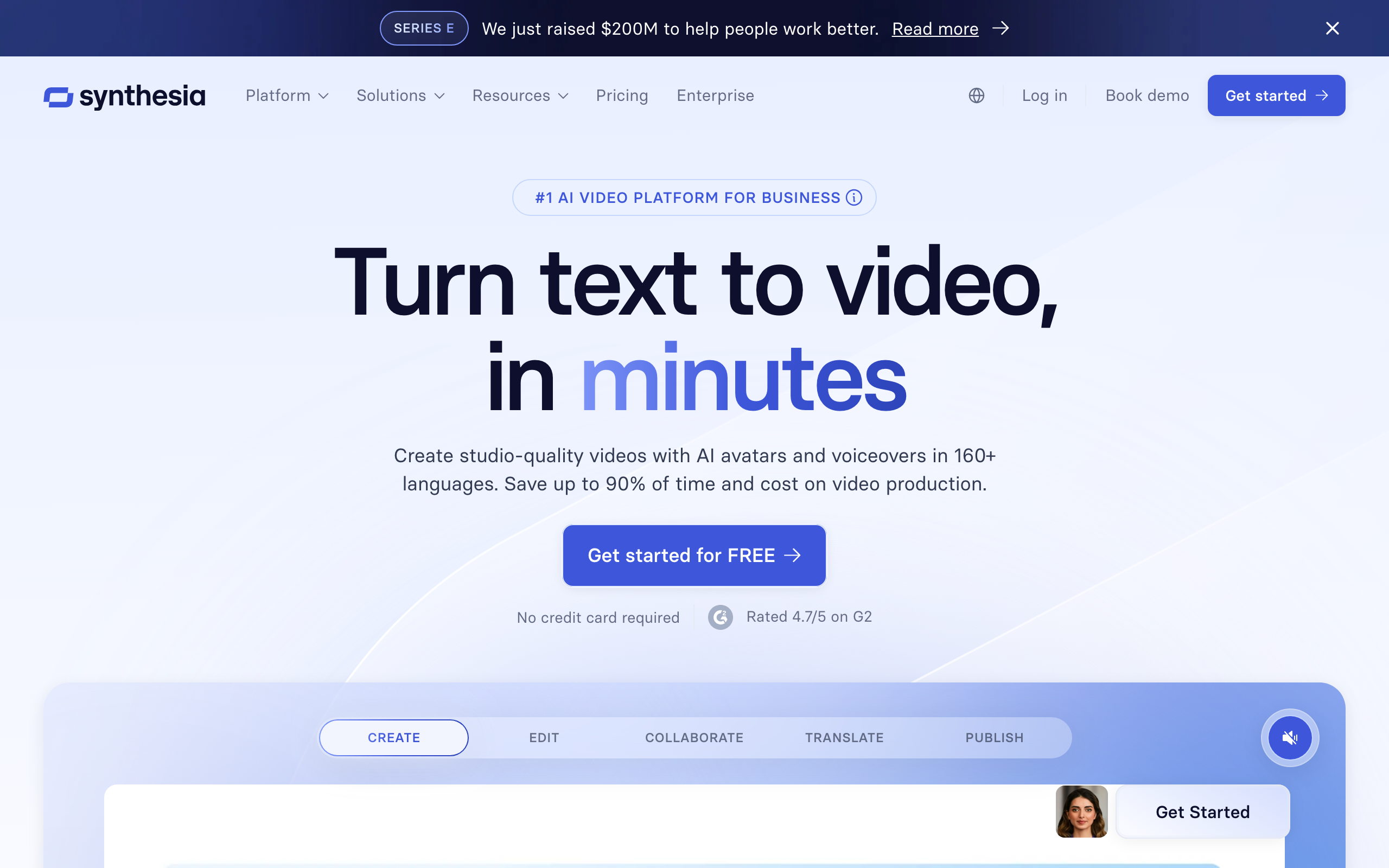 Synthesia is an AI video generation platform that enables users to create videos from text using digital avatars and voiceovers. The platform supports over 160 languages, making it accessible to a global audience. Users can input text scripts, select from available avatars, and generate professional-quality videos without requiring filming equipment or video production expertise. The platform caters to businesses, educators, content creators, and marketing professionals who need to produce videos quickly and at scale. Common use cases include creating training materials, explainer videos, marketing content, and corporate communications. Synthesia eliminates traditional video production bottlenecks by automating the avatar performance and voice synthesis components of video creation. Key features include a selection of digital avatars with varied appearances and presentations, multilingual voice generation capabilities, and a text-to-video workflow. The platform offers both free and paid tiers, allowing users to experiment with the technology before committing to premium features. The free tier provides access to basic functionality, while paid options unlock additional avatars, customization options, and commercial usage rights. Synthesia positions itself as an alternative to traditional video production methods, offering faster turnaround times and lower production costs for organizations that need to generate video content regularly.
