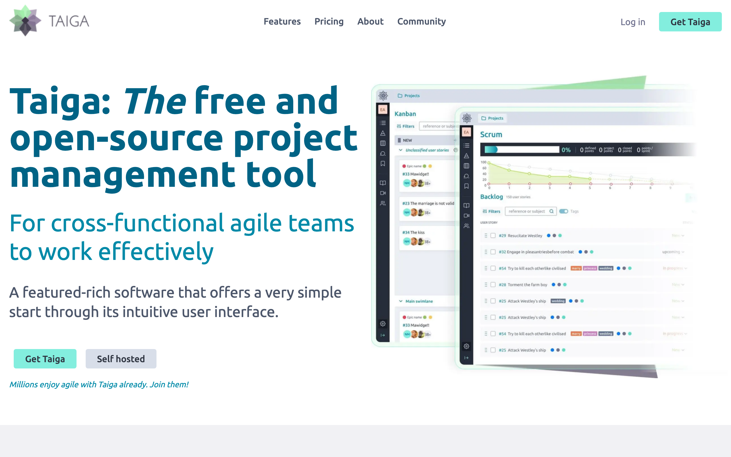 Open sourceVisit taiga.io for full pricing details.