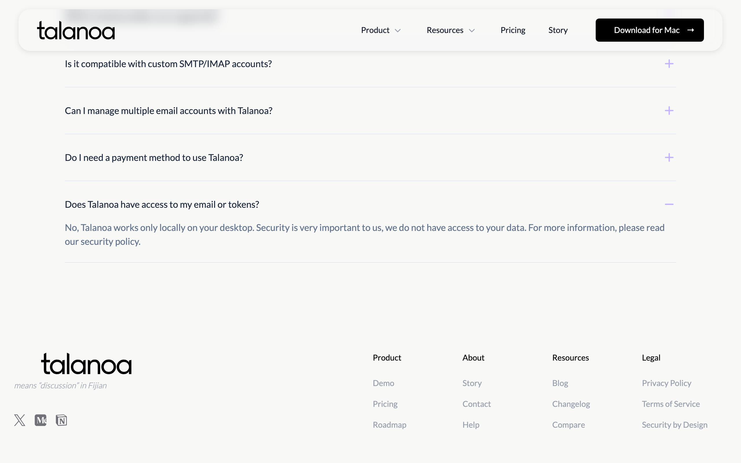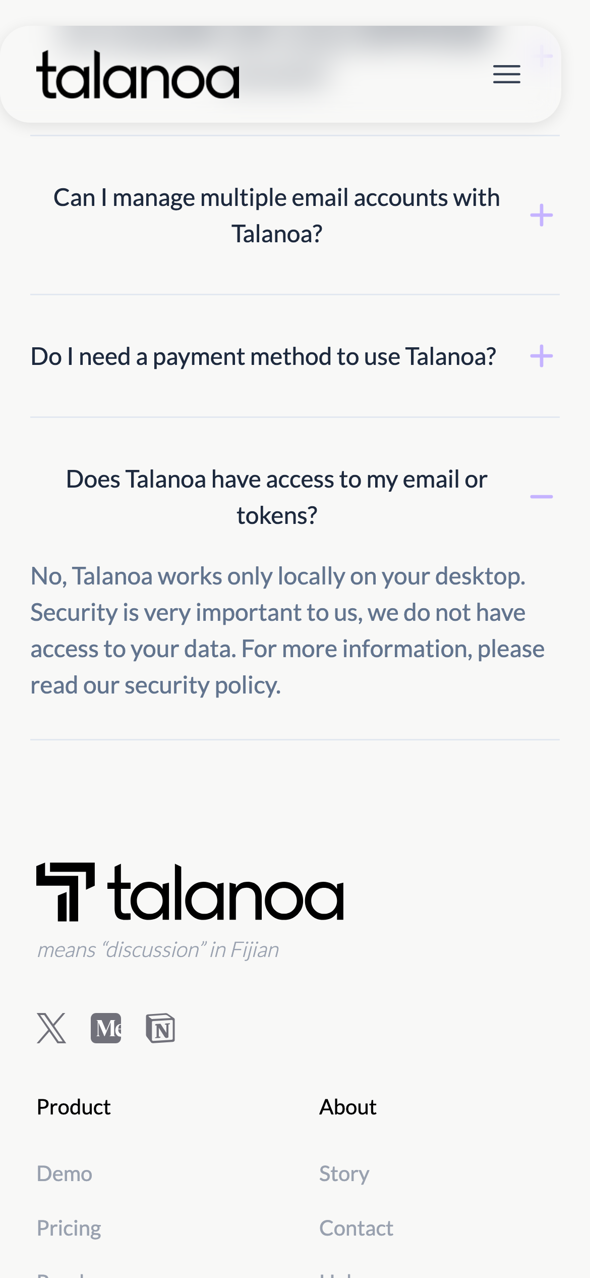 Talanoa is an open-source email client designed to treat emails as conversations rather than isolated messages. Available for macOS, Windows, and Linux, it addresses a common frustration among users who struggle with inbox clutter and disorganization. The application prioritizes privacy and security by operating locally without tracking or data collection. Talanoa is built by a fullstack developer who refined the concept over several years, focusing on thoughtful design principles that emphasize simplicity and usability. Key features include smart organization tools designed to reduce email clutter and make the inbox feel more manageable. The client appeals to users who value privacy, prefer open-source software, and want a different approach to email management than traditional clients offer. As a free, open-source project, Talanoa targets developers and privacy-conscious users who want control over their email experience without proprietary solutions or surveillance. It's particularly suited for anyone frustrated with conventional email workflows and seeking a more conversation-oriented approach to digital communication.