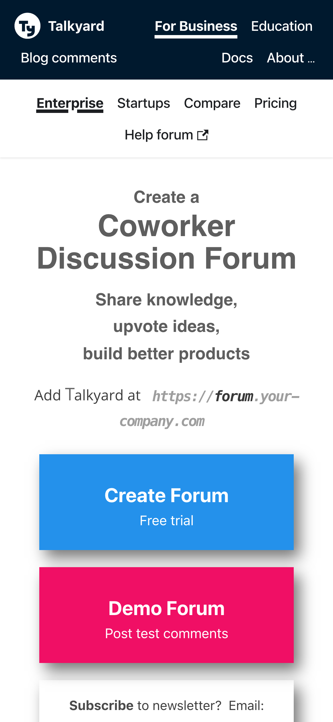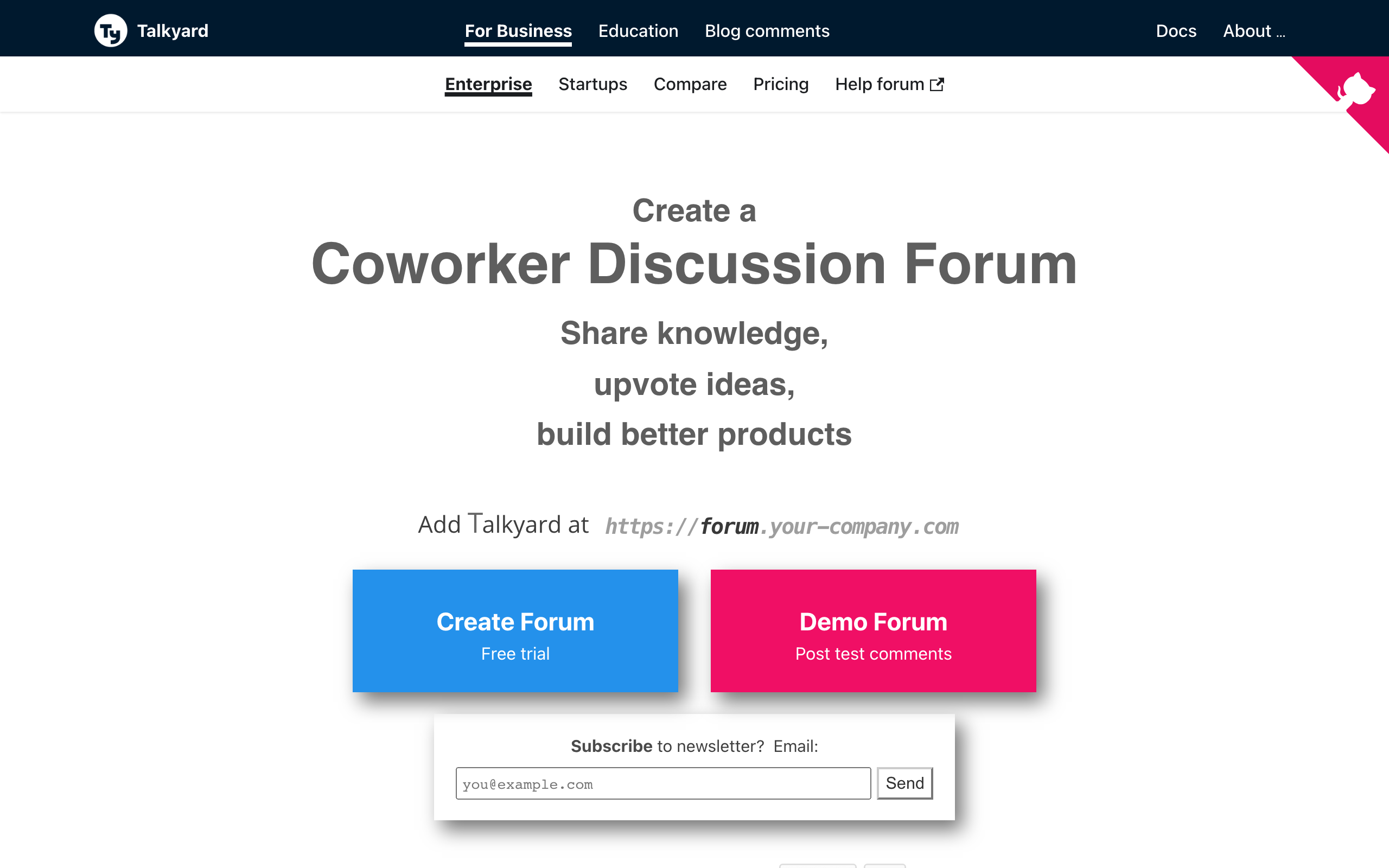 Talkyard is an open source community platform that combines features from multiple popular tools into a single solution. It enables organizations to create dedicated spaces where users can ask questions, share ideas, and participate in discussions. The platform serves teams and communities seeking a centralized hub for knowledge sharing and collaboration. It supports multiple interaction patterns including Q&A forums, idea suggestion and voting, open-ended discussions, and team chat functionality. This hybrid approach allows different types of conversations to coexist within one environment. Key features include discussion threads with upvoting capabilities, question-and-answer sections for resolving common issues, and embedded comments for integration with external content. The platform is designed to unblock teams by providing quick access to answers and facilitating collaborative decision-making around product development and organizational priorities. As open source software, Talkyard can be self-hosted and modified to fit specific organizational needs. It provides an alternative to combining multiple separate tools like Slack, Discord, Stack Overflow, and Discourse by consolidating these capabilities into a single platform. The software is particularly suited for product teams, internal organizations, and online communities that need both synchronous chat and asynchronous discussion capabilities in one place.