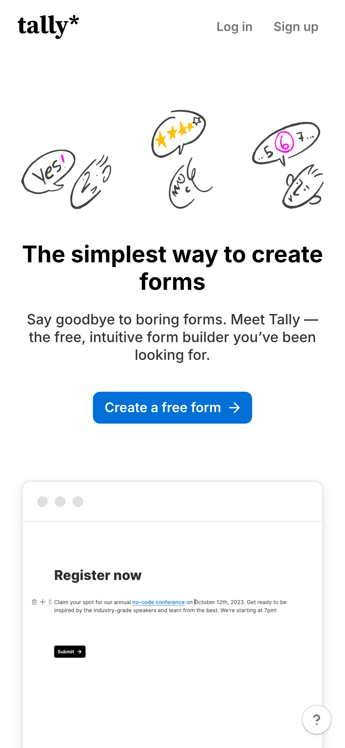 The simplest way to create beautiful, professional forms in seconds. Unlimited forms, unlimited submissions, forever free. Just start typing - no coding needed.