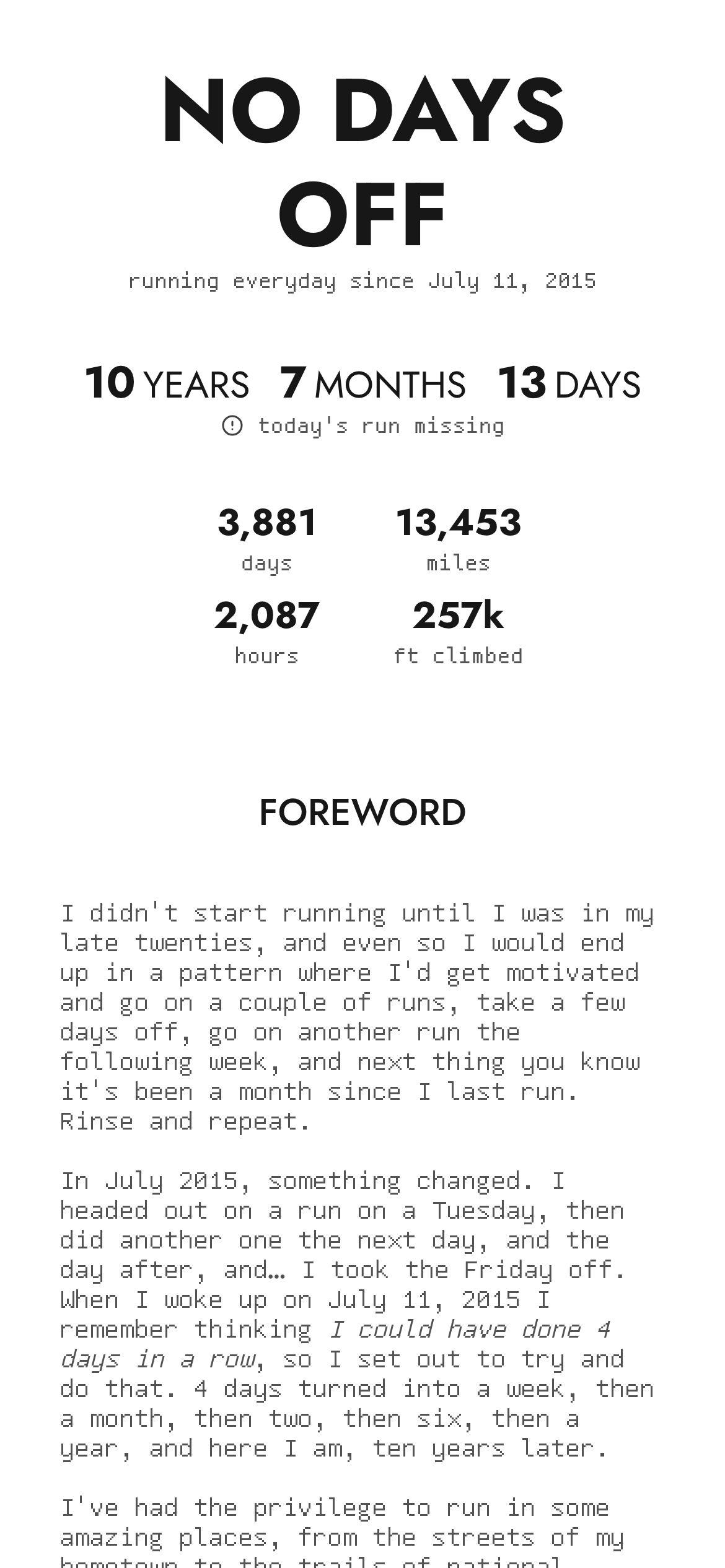 Ten years of running every day, visualized