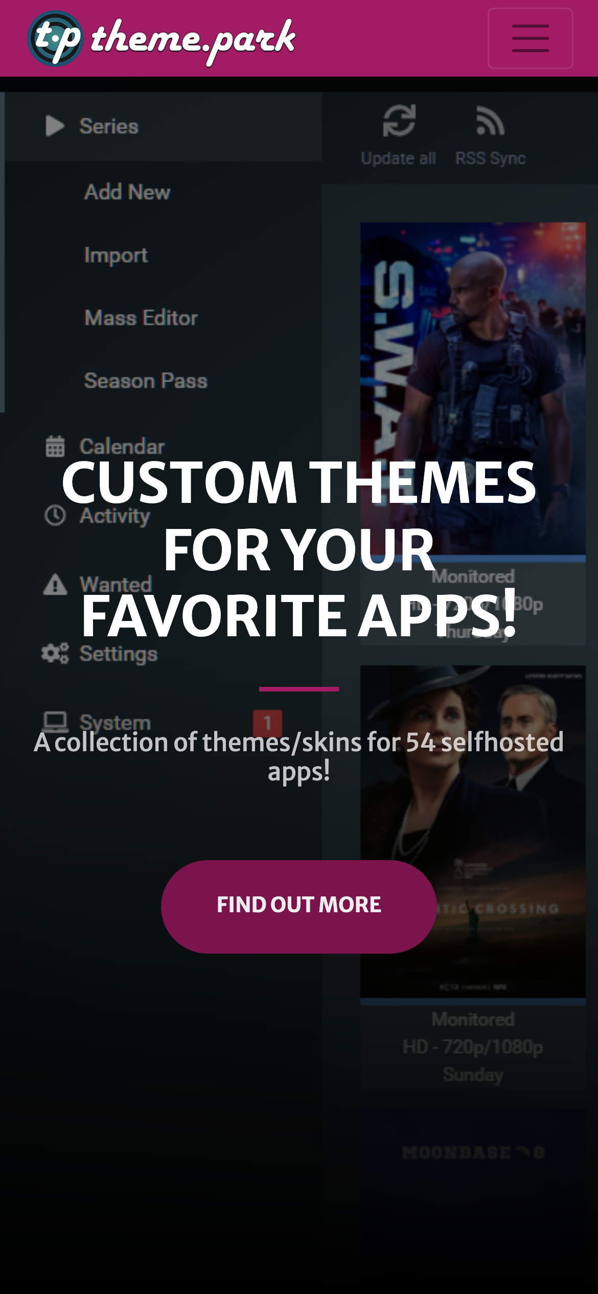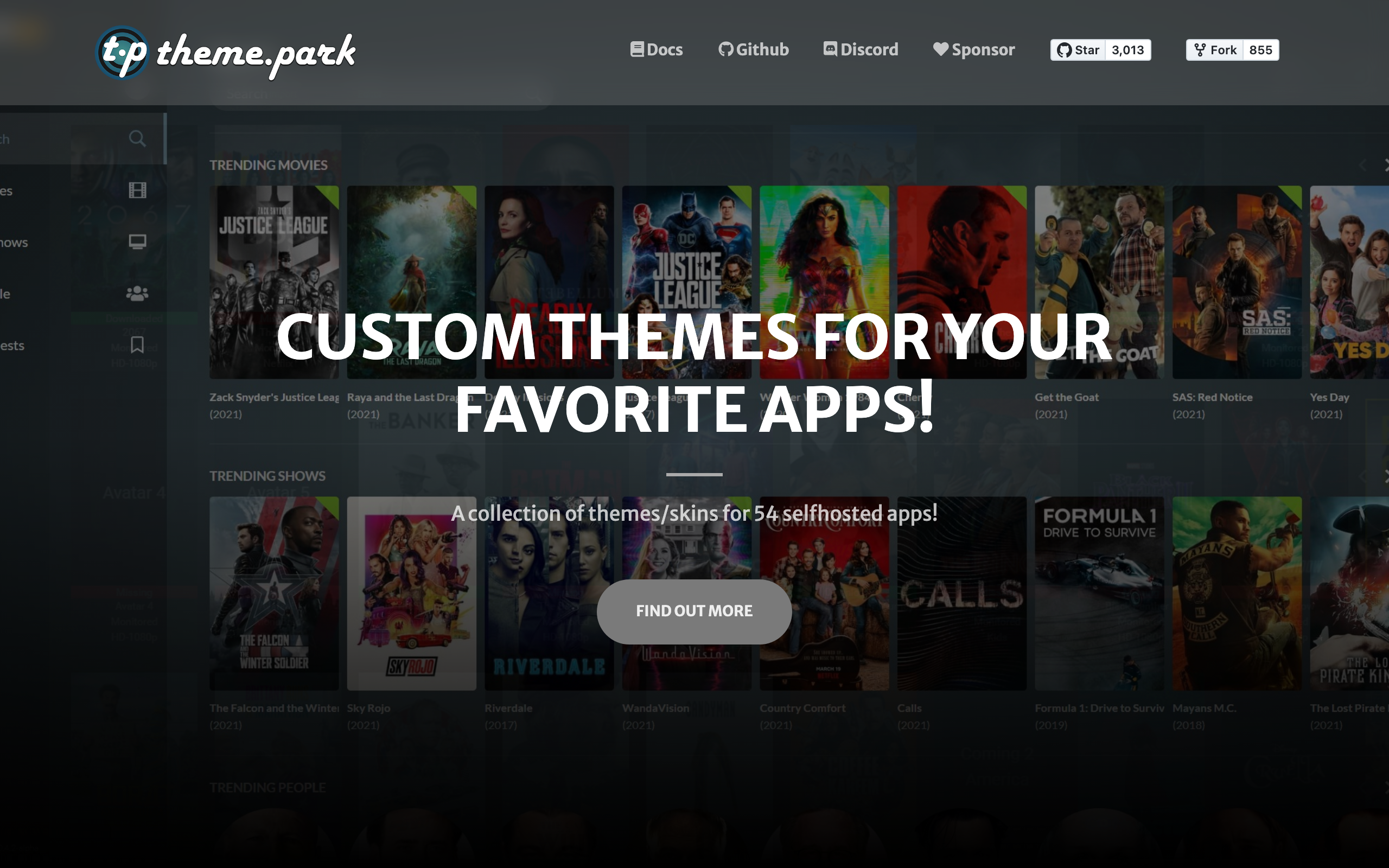 theme.park is an open-source collection of themes and skins for over 50 self-hosted applications. It enables users to customize the appearance of popular selfhosted services through CSS-based styling, providing a consistent look across multiple applications. The project offers multiple installation methods to accommodate different deployment setups. Users can integrate themes via custom Docker mods compatible with linuxserver.io containers, custom scripts for Hotio containers, or subfilter configurations with web servers including Nginx, Apache, Caddy, and Traefik. For those preferring a centralized approach, theme.park provides a Docker image for self-hosting the CSS files directly. theme.park is designed primarily for developers and self-hosted application administrators who want to apply uniform theming across their infrastructure. The project maintains comprehensive documentation at theme-park.dev and an active Discord community for support and collaboration. As an open-source project, theme.park is freely available and community-driven, making it accessible for both personal and organizational use without licensing costs. The collection includes CSS addons for select themes, extending customization options beyond basic color schemes and layouts.