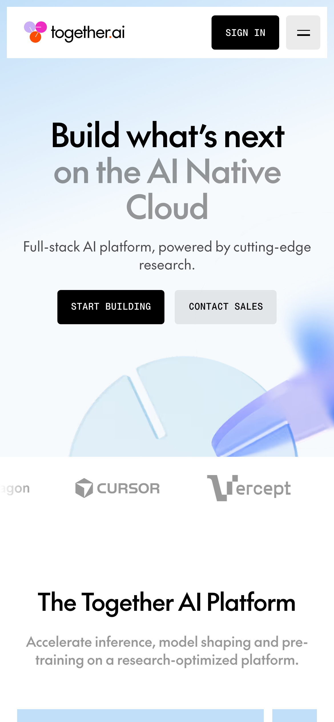 Build what's next on the AI Native Cloud. Full-stack AI platform for inference, fine-tuning, and GPU clusters — powered by cutting-edge research.