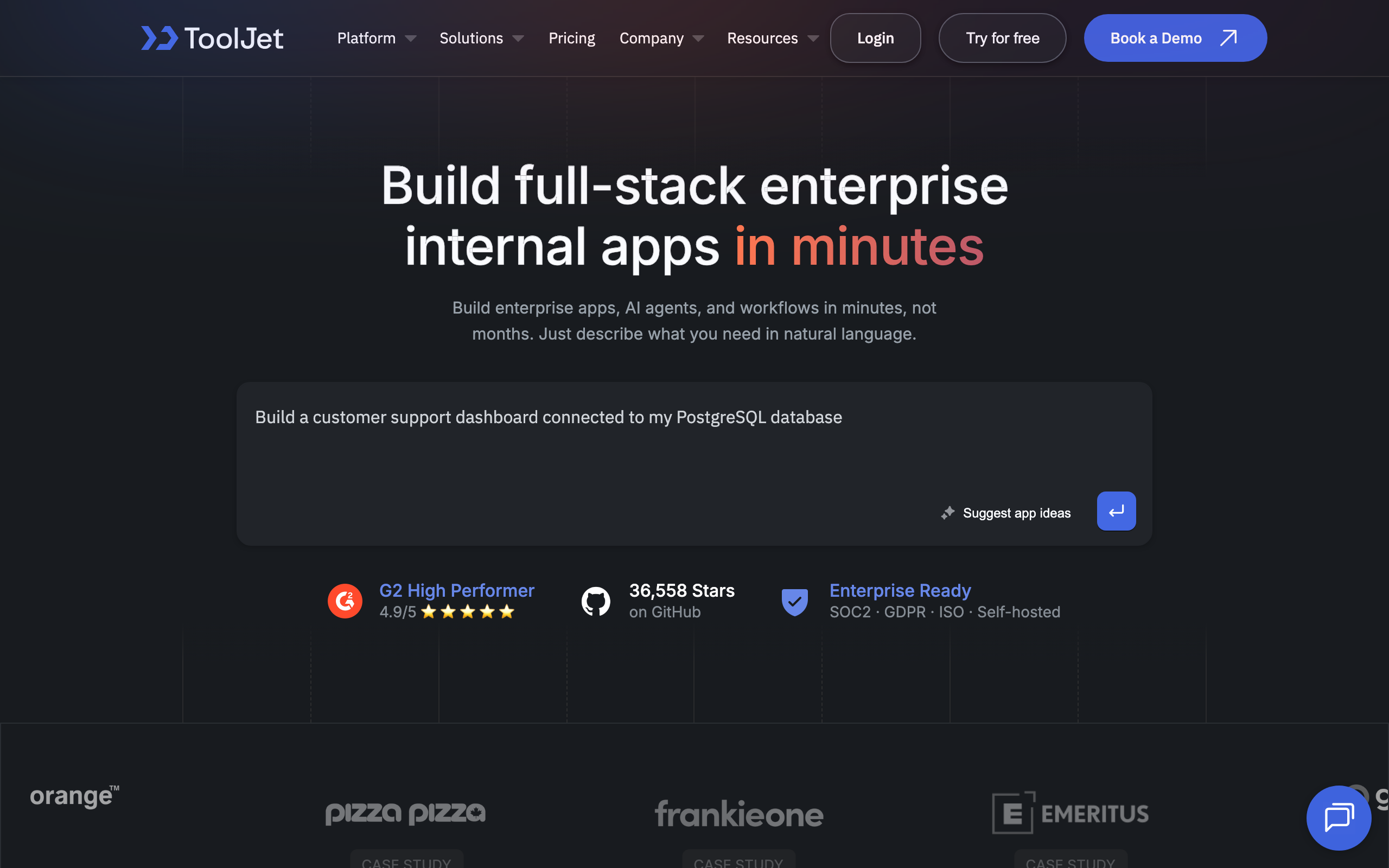 ToolJet is an open-source developer platform designed for building enterprise applications, AI agents, and workflows rapidly. The platform enables development teams to create internal tools in minutes rather than months, addressing the common challenge of lengthy application development cycles. The platform is built with enterprise requirements in mind, meeting SOC2, GDPR, and ISO compliance standards out of the box. This focus on security and regulatory compliance makes it suitable for organizations handling sensitive data or operating in regulated industries. ToolJet serves developers and technical teams who need to deploy internal applications quickly without sacrificing security or compliance requirements. The open-source model allows organizations to self-host the platform and customize it according to their specific needs. Key capabilities include support for building custom enterprise applications, creating AI-powered agents, and developing automated workflows. The platform abstracts away common infrastructure challenges, allowing teams to focus on application logic rather than underlying technical complexity. Being open source, ToolJet provides transparency regarding its codebase and eliminates licensing costs, making it an accessible option for organizations of various sizes. The compliance-ready architecture reduces the burden of security audits and regulatory validation that typically extends enterprise application timelines.
