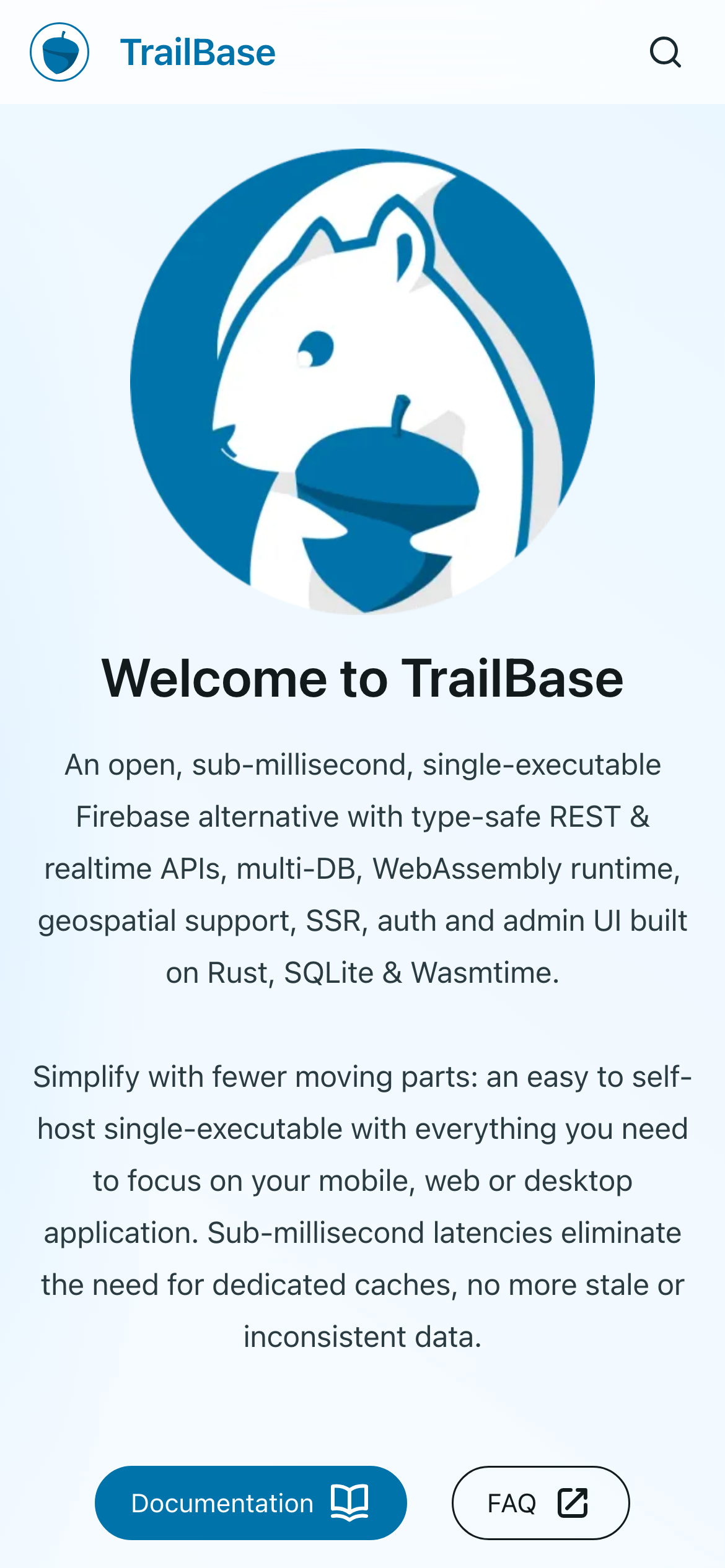 TrailBase is an open-source backend framework designed as an alternative to Firebase. Built on Rust, SQLite, and Wasmtime, it operates as a single executable that delivers sub-millisecond response times. The platform provides type-safe REST and realtime APIs for building backend services without managing multiple infrastructure components. The framework includes several integrated features: a built-in JavaScript/TypeScript runtime for server-side logic, authentication systems, an admin UI for management, and support for multiple databases. It also offers geospatial capabilities and server-side rendering support, making it suitable for applications requiring location-based features or dynamic content generation. TrailBase targets developers seeking a self-contained, open-source backend solution with reduced operational complexity. Its single-executable design eliminates the need for separate service deployments, while the type-safe APIs reduce runtime errors during development. The inclusion of a WebAssembly runtime enables developers to write custom logic that runs directly on the backend. Available entirely as open source, TrailBase removes licensing barriers for both small projects and larger deployments. It appeals to developers who prefer self-hosted solutions over managed cloud services, or those wanting more control over their backend infrastructure while maintaining the development convenience of platforms like Firebase.
