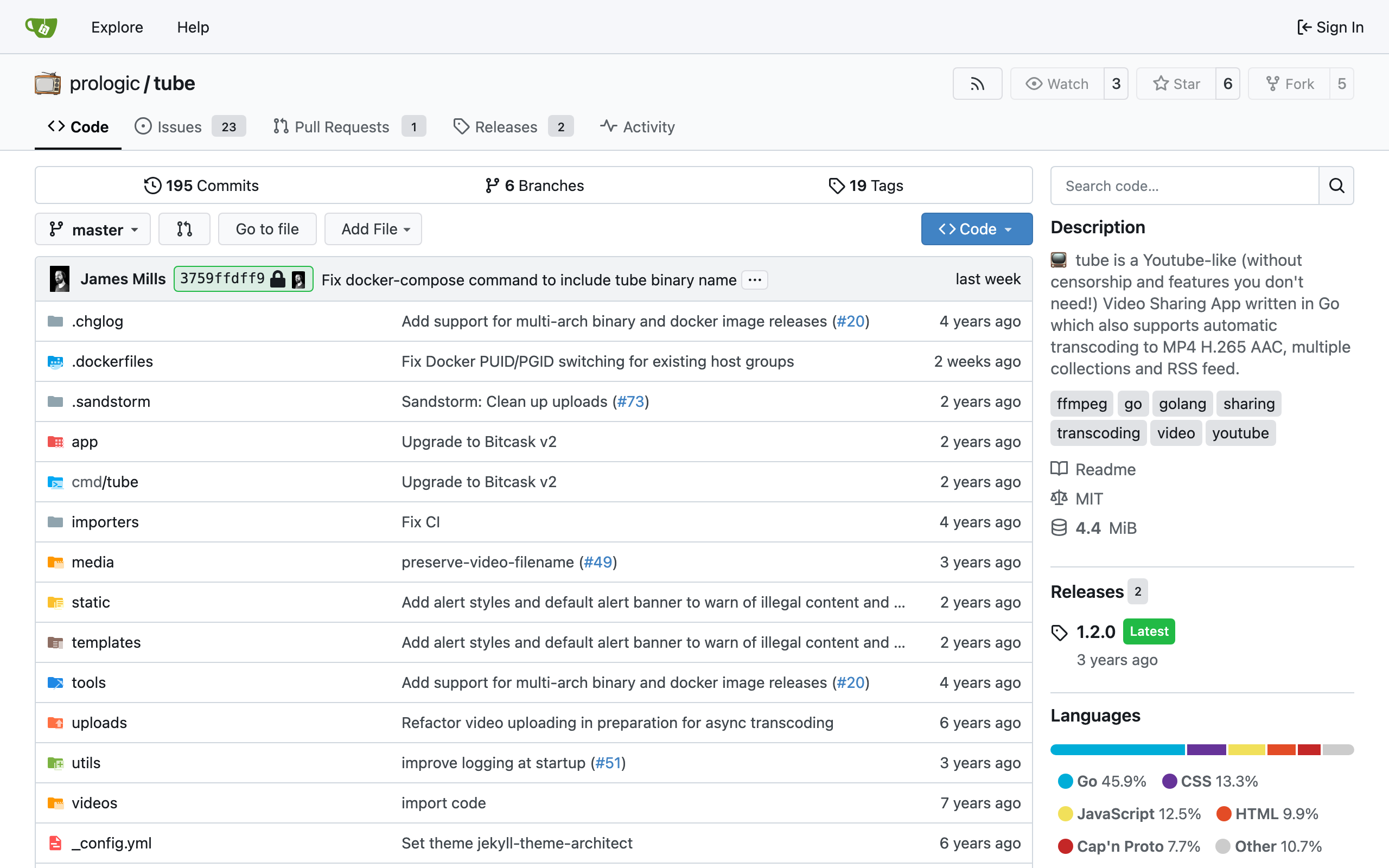 Tube is a video sharing application written in Go that provides a YouTube-like platform with a focus on simplicity and user control. The software enables users to host and share videos without the content restrictions or unnecessary features found in mainstream platforms. The application automatically transcodes uploaded videos to MP4 format using H.265 video codec and AAC audio, ensuring compatibility and efficient storage. Tube supports multiple collections, allowing users to organize videos into different categories or channels. The platform also generates RSS feeds, enabling subscribers to follow new content through feed readers. Tube is designed for users who want to self-host a video sharing platform, making it suitable for organizations, communities, or individuals seeking an alternative to centralized video hosting services. The application appeals to those who prioritize control over their content, transparency in platform operations, and a streamlined feature set without bloat. The project is open-source and available on Git Mills, allowing technical users and developers to deploy, customize, and contribute to the platform. Rather than positioning itself as a feature-rich replacement for large platforms, Tube emphasizes being a lightweight, straightforward solution for video sharing with essential functionality and minimal overhead.