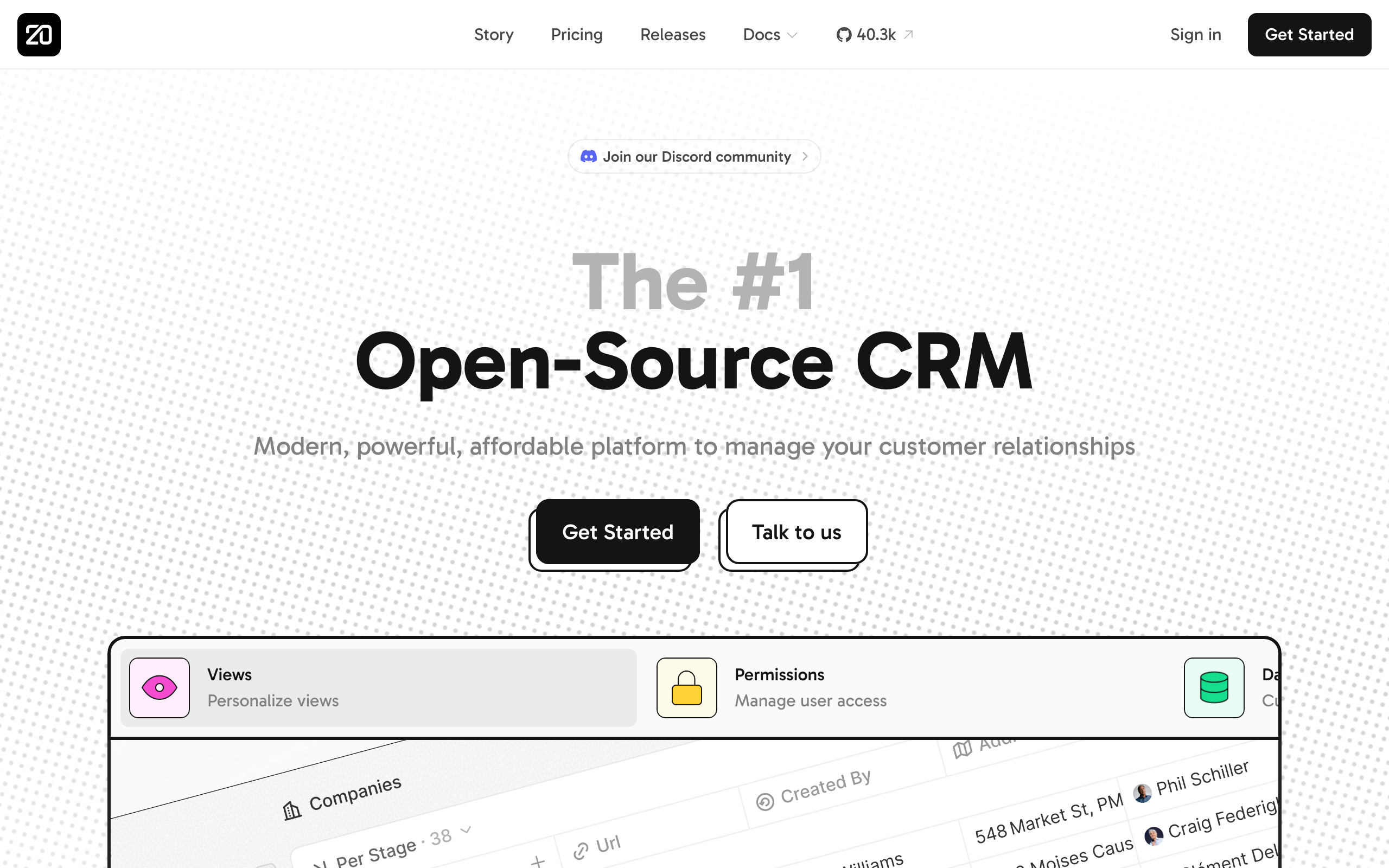 Twenty is a modern, open-source CRM alternative to Salesforceâfully customizable, affordable, and powered by the community.