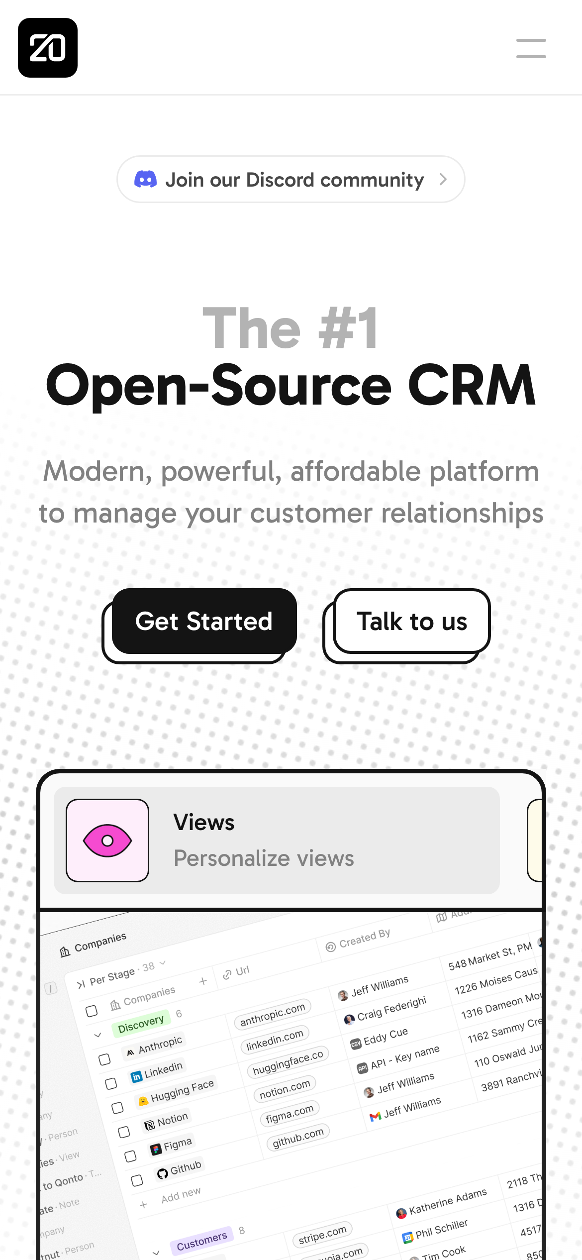 Twenty is an open-source CRM (Customer Relationship Management) platform designed as an alternative to traditional enterprise solutions like Salesforce. Built with customization and accessibility in mind, Twenty enables businesses to manage customer relationships, sales pipelines, and interactions without the high costs associated with proprietary CRM software. The platform serves organizations of various sizes that require CRM functionality but prefer greater control over their data and infrastructure. Being open-source, Twenty allows developers and technical teams to modify, extend, and deploy the system according to their specific business needs. Users can host Twenty on their own servers, ensuring data privacy and reducing long-term licensing expenses. Key features include a fully customizable interface, community-driven development, and the ability to integrate with existing business tools. The platform is designed for teams managing customer relationships, sales operations, and customer data who want flexibility beyond what off-the-shelf solutions typically provide. Twenty is particularly suited for organizations seeking transparency in their CRM tooling, developers who want to contribute to or modify their CRM, and companies with budget constraints that make enterprise CRM solutions impractical. As an open-source project powered by community contributions, Twenty combines affordability with the collaborative benefits of community-supported software development.
