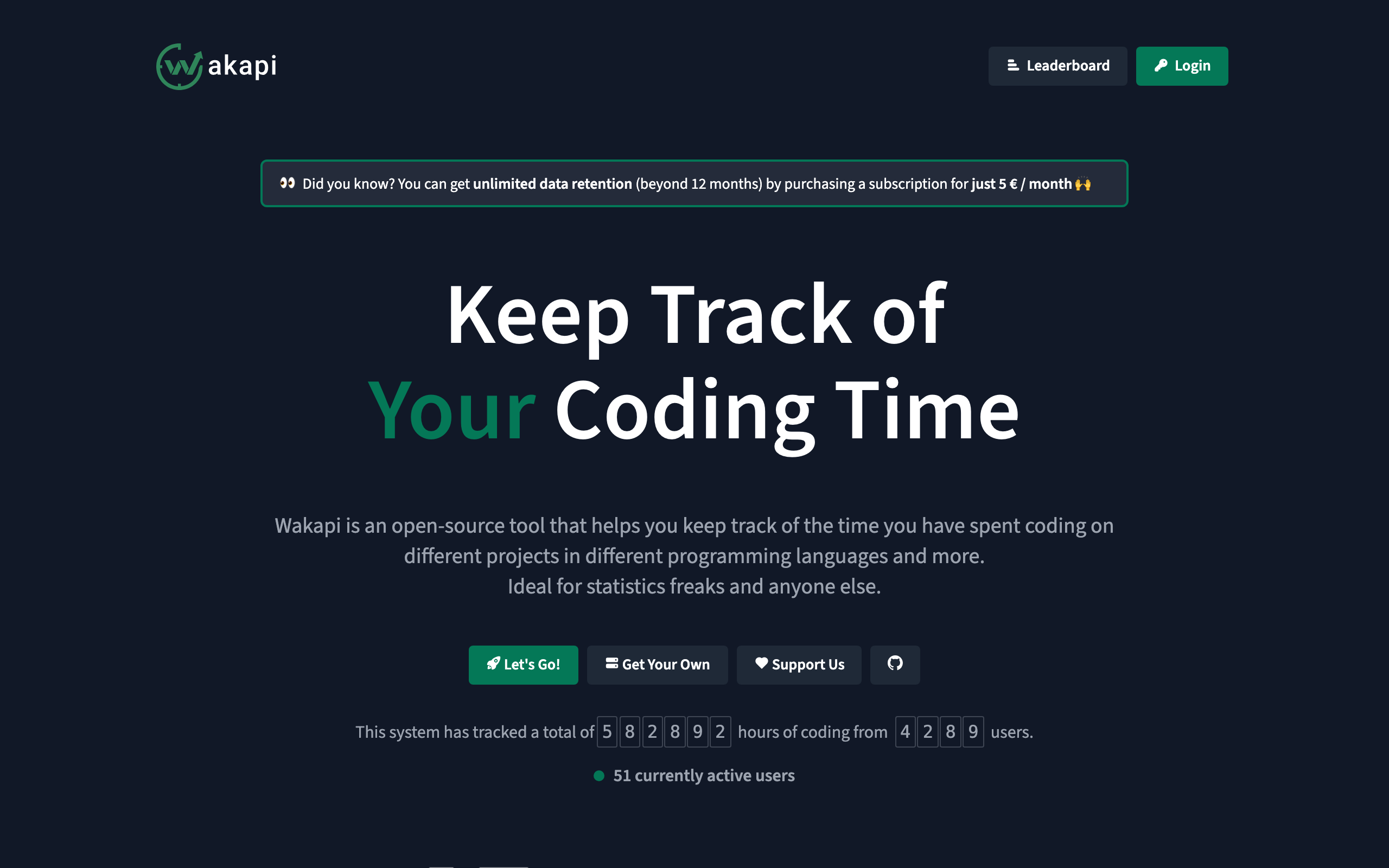 - Self-hostable alternative to WakaTime for privacy-conscious developers