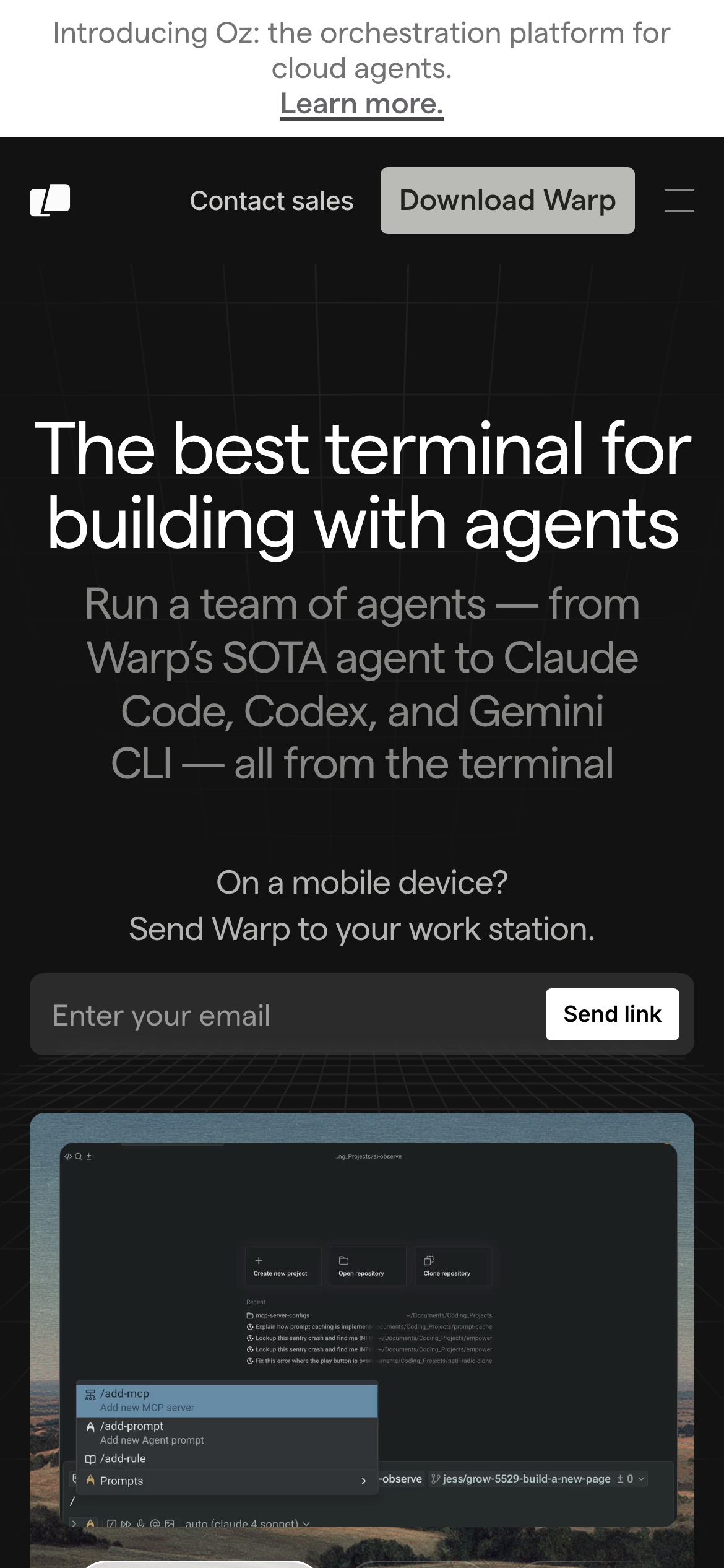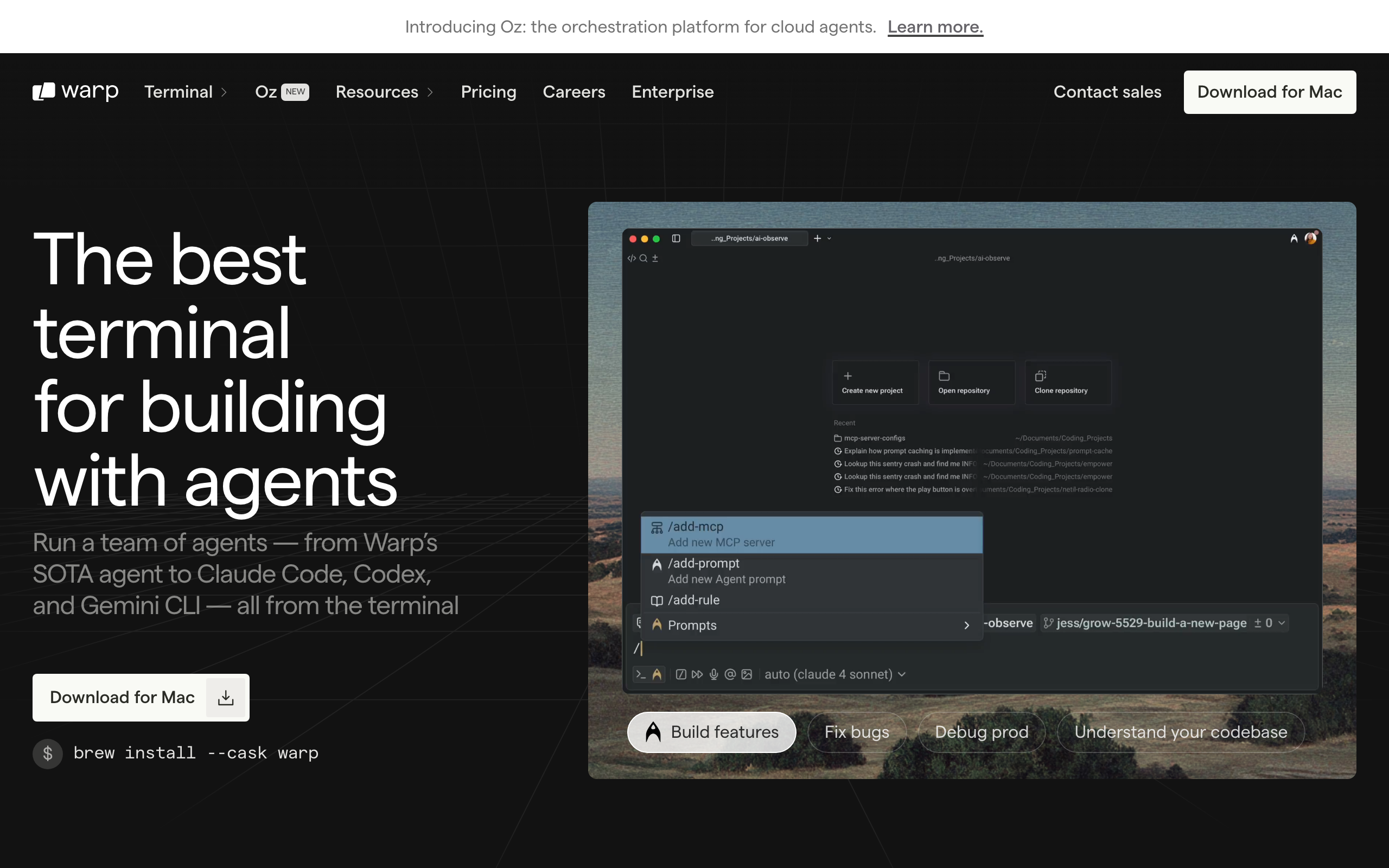 Fast terminal, state-of-the-art agents, and cloud orchestration for the full software development lifecycle.