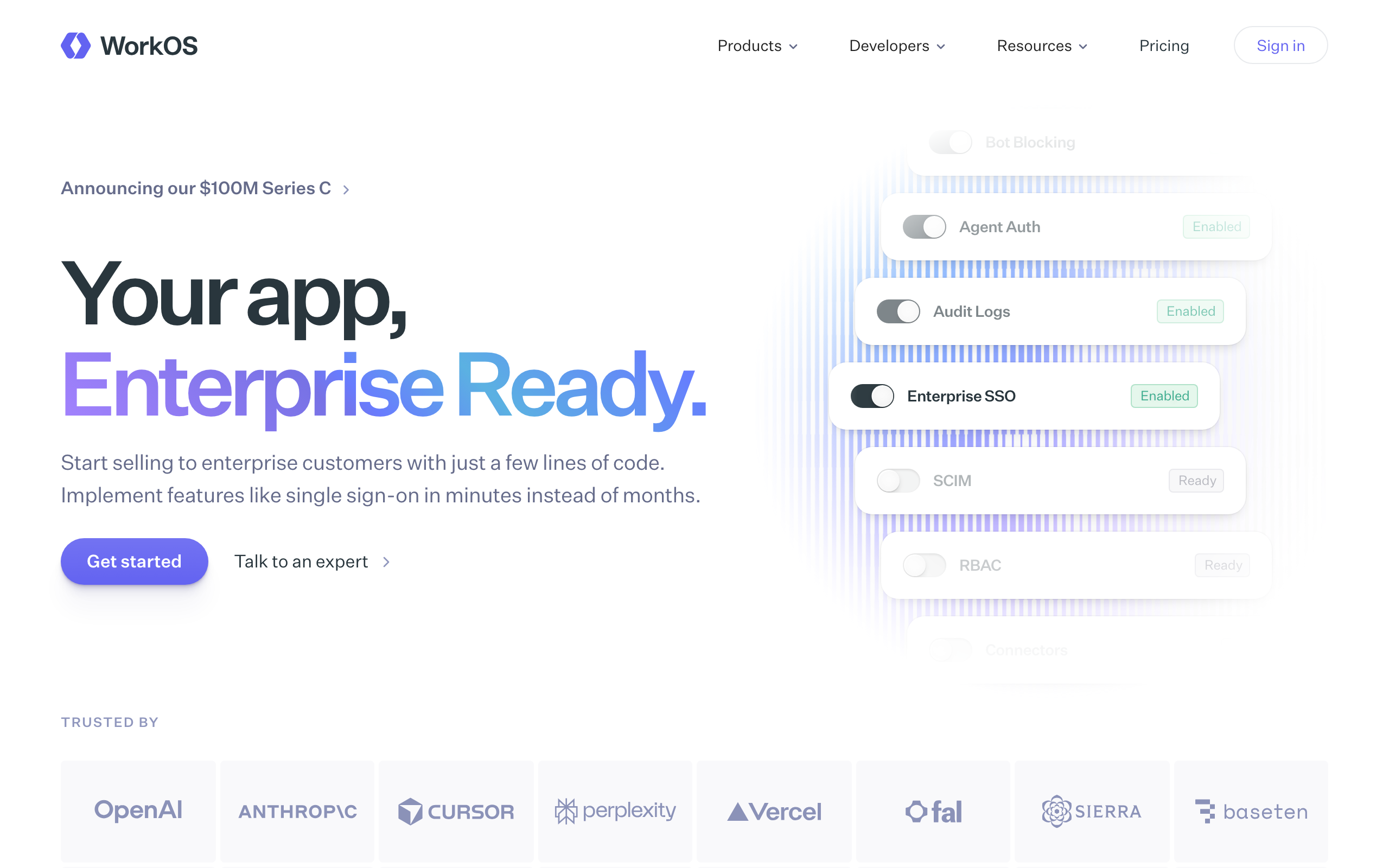 Developer APIs/SDKs for Enterprise Ready features like Single Sign-On, Directory Sync, Audit Logging, and more. Get started for free.