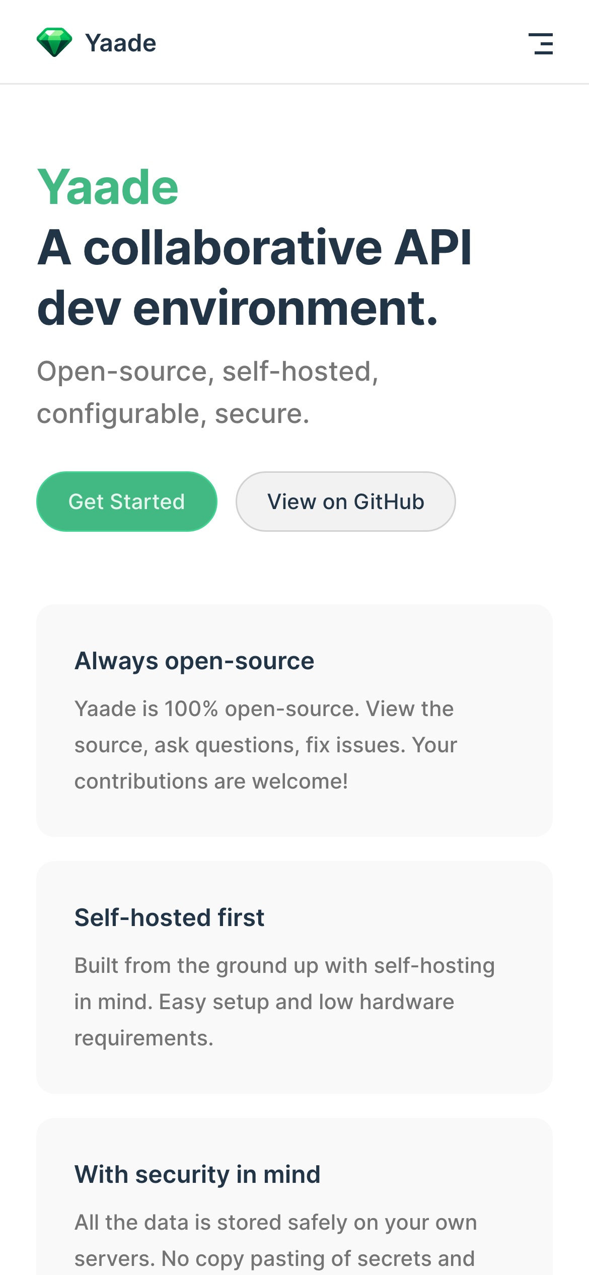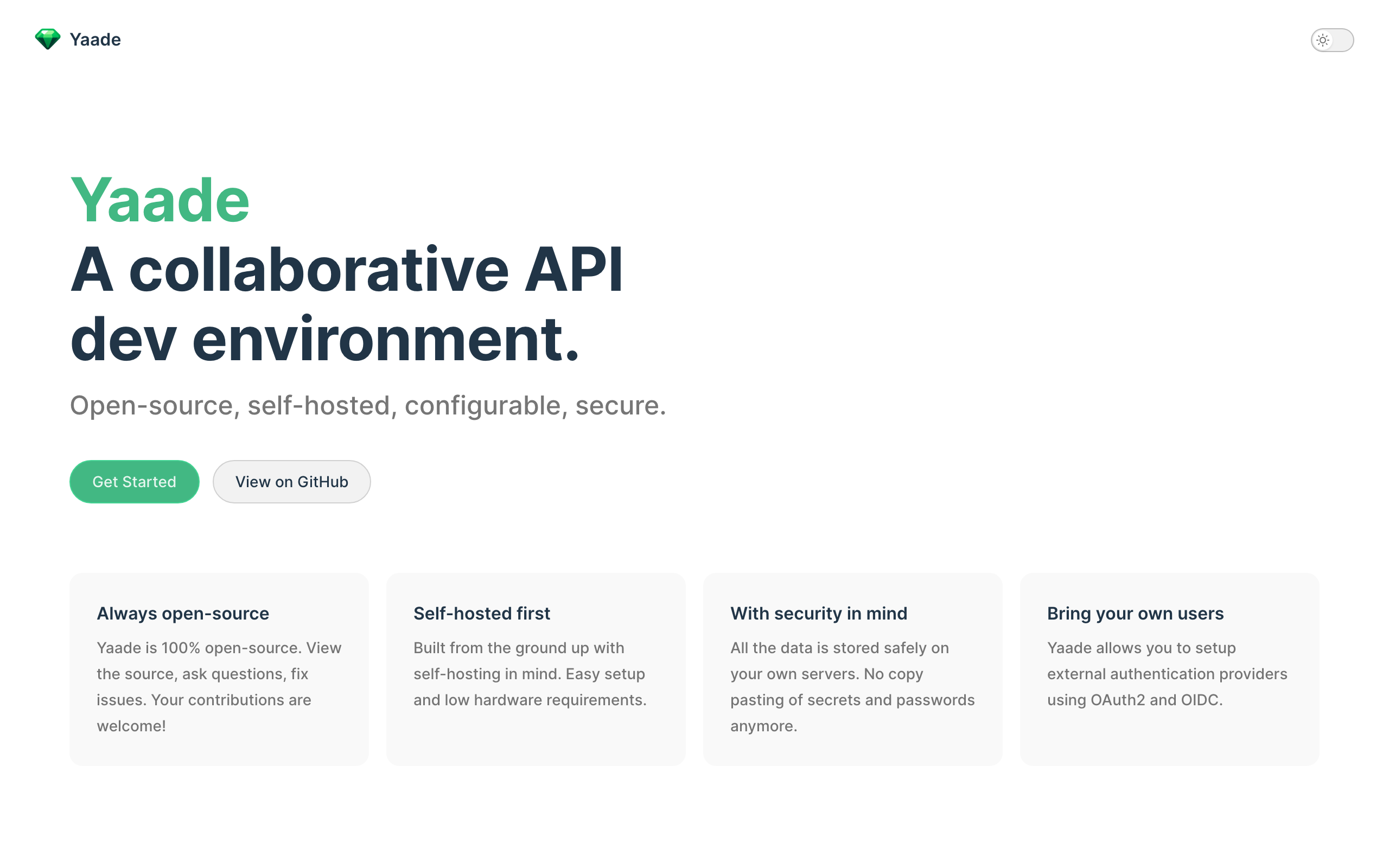 Yaade is an open-source, self-hosted API development environment designed for teams that need to collaborate on API projects. Built with self-hosting as a core requirement, Yaade offers a configurable and secure alternative to cloud-based API tools, allowing organizations to maintain full control over their infrastructure and data. The platform enables developers to build, test, and manage APIs within their own environment, making it suitable for teams prioritizing data privacy, security, and customization. Yaade's lightweight design and low hardware requirements make it accessible for organizations of various sizes, from small teams to enterprises. As a fully open-source project, Yaade provides transparency and flexibility—users can review the source code, contribute improvements, and customize the tool to fit specific workflows. The self-hosted approach eliminates dependency on third-party services and reduces ongoing subscription costs. Yaade serves developers, API architects, and technical teams who need a collaborative development environment without the constraints of proprietary solutions. It is particularly valuable for organizations operating in regulated industries, those requiring on-premises deployment, or teams seeking greater control over their development tools and data.