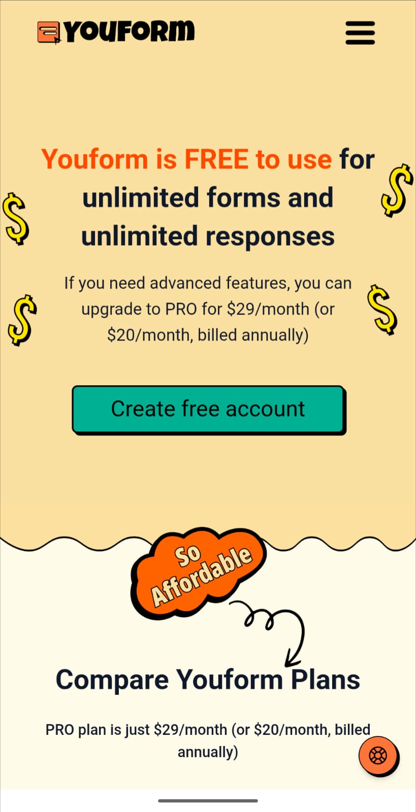 YouForm - The most affordable Typeform alternative Pricing