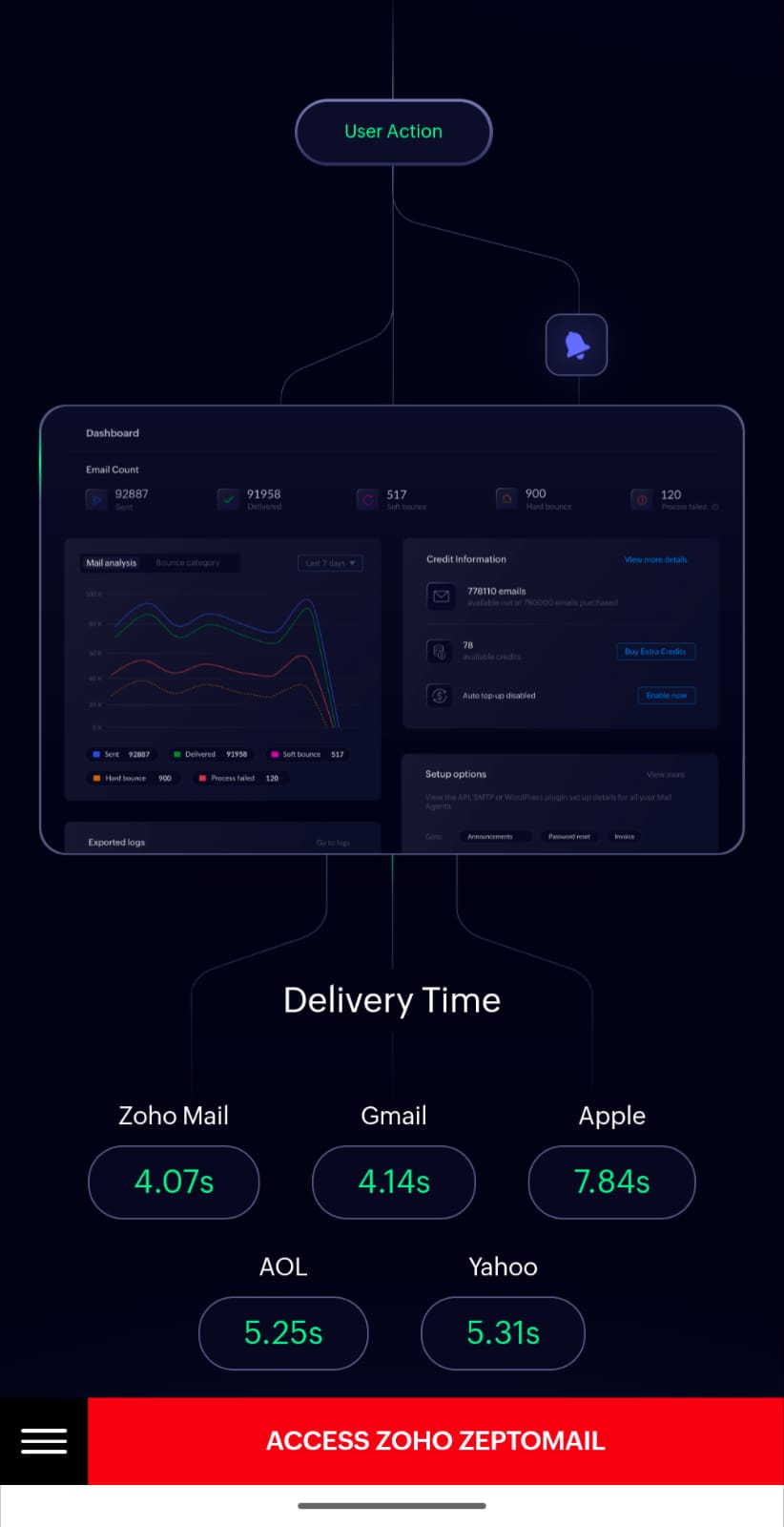 - Millisecond-fast email sending for welcome emails, OTPs, and invoices